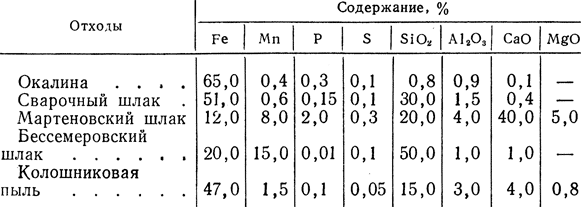 3. Заменители железных рудПроизводственные отходы - дешевое сырье, которое в некоторых случаях может служить заменителем железных, а иногда и марганцевых руд. В доменном производстве их используют в процессе плавки для извлечения железа и марганца. Примерный состав отходов производства показан в табл. 4. Таблица 4 Примерный химический состав отходов производства