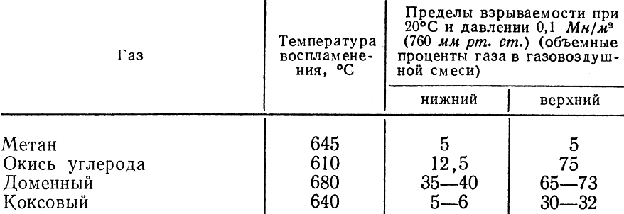 Температура воспламенения и пределы взрываемости горючих газов в смеси с воздухом