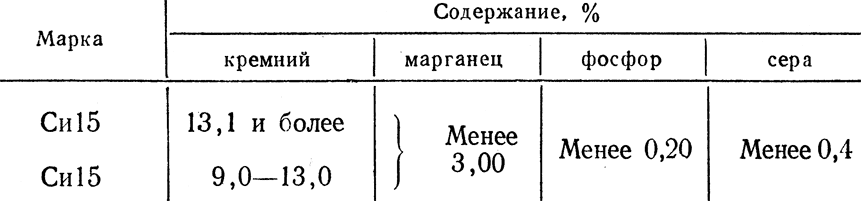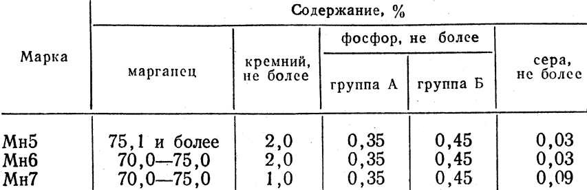 Зеркальный чугун1 выплавляется трех марок (34), в которых содержание марганца нормируется от 10 до 25% и фосфора от 0,18 до 0,22%. В чугуне всех трех марок содержание серы не должно превышать 0,03% и кремния 2,0%.