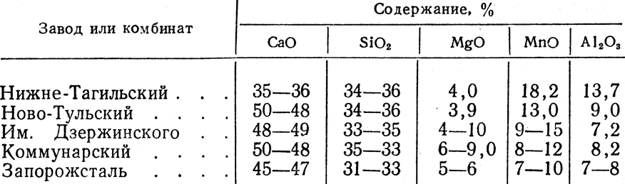 В табл. 18 приведены составы шлака передельных чугунов некоторых заводов Юга и Востока, а в табл. 19 - технологический режим плавки на передельный чугун.